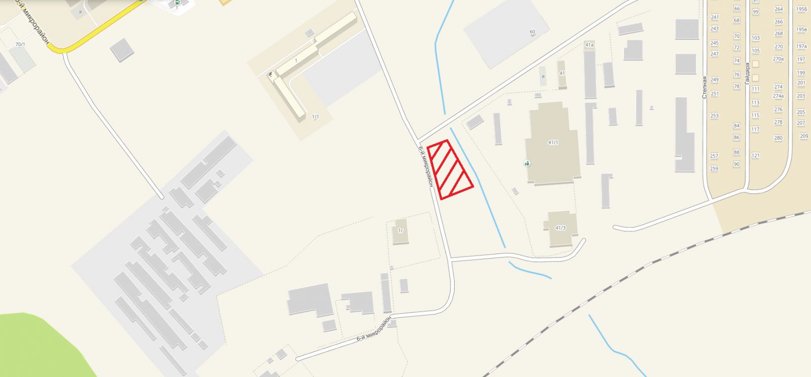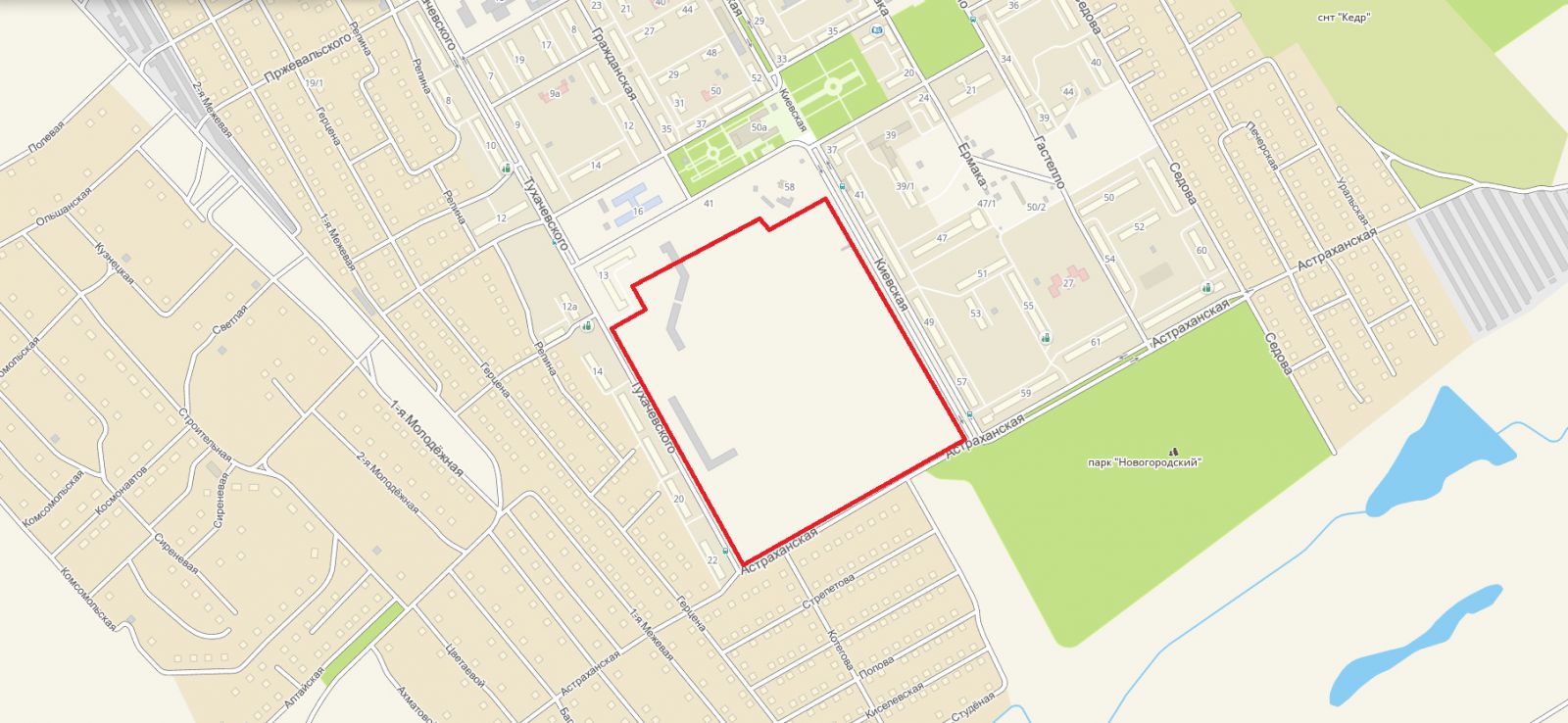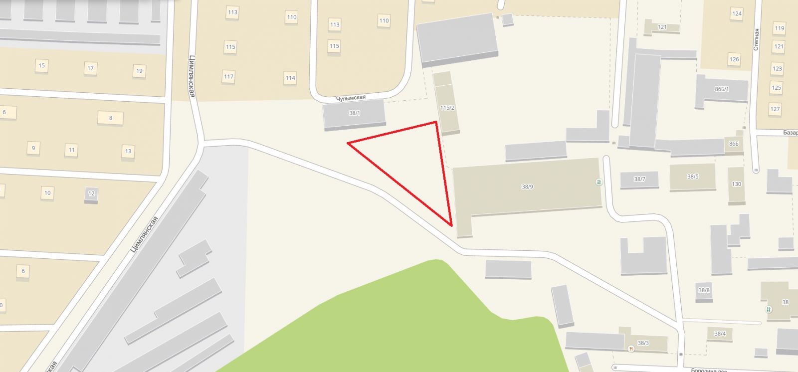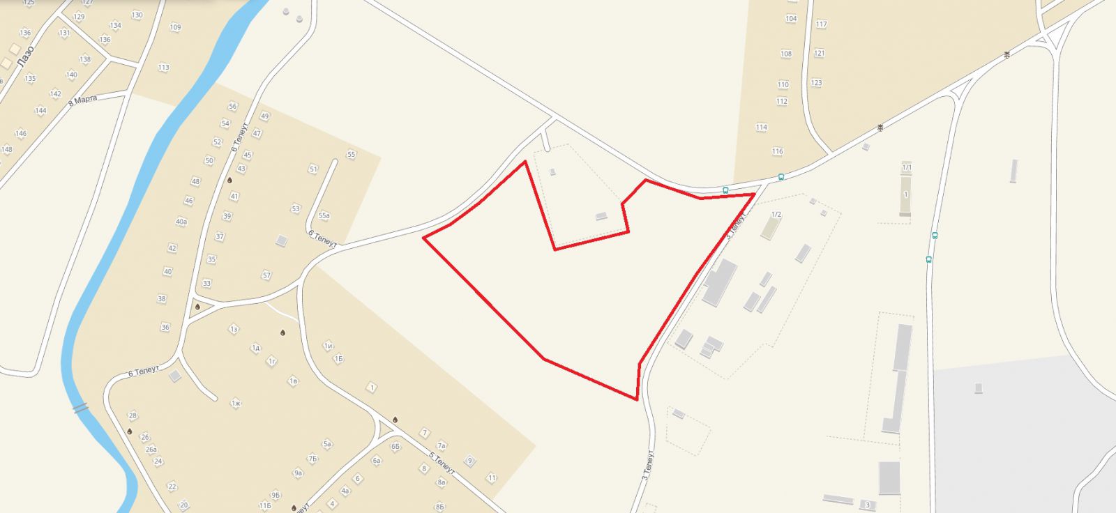 Восточная часть центрального района города, в районе старицы реки Бачат |