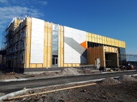 Подрядная организация, задействованная на возведении автомобильного вокзала, завершила все строительные работы. Сейчас идет отделка фасада.