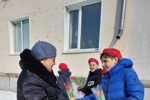 Эту инициативу активно поддержали беловчане, юнармейцы и волонтёры поздравляли женщин с праздником и дарили им цветы.