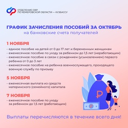 Отделение Соцфонда по Кемеровской области информирует Кузбассовцев об изменениях в графике выплат детских пособий и пенсий в ноябре