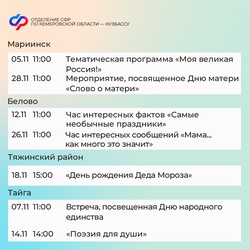 Ноябрь богат на праздники и интересные события, которые не обойдут вниманием и в центрах общения старшего поколения Отделения Соцфонда по Кемеровской области.