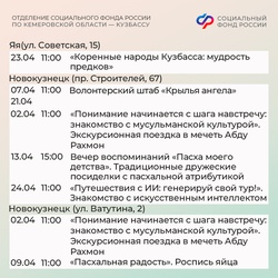 Запланированы экскурсионные поездки в новокузнецкую мечеть Абду Рахмон, театрализованные представления по мотивам «Сказок народов мира», выставки и мероприятия, посвященные коренным народам Кузбасса. Это возможность узнать больше о традициях, обычаях и культуре тех, кто живет рядом.