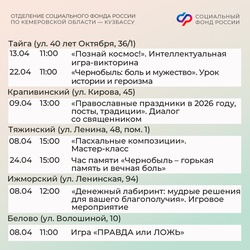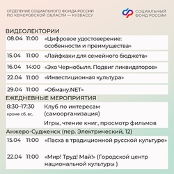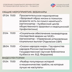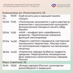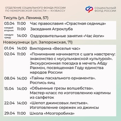 Апрель в центрах общения старшего поколения Отделения СФР по Кузбассу получился тематически насыщенным. Выделили главное, что ждет посетителей.
